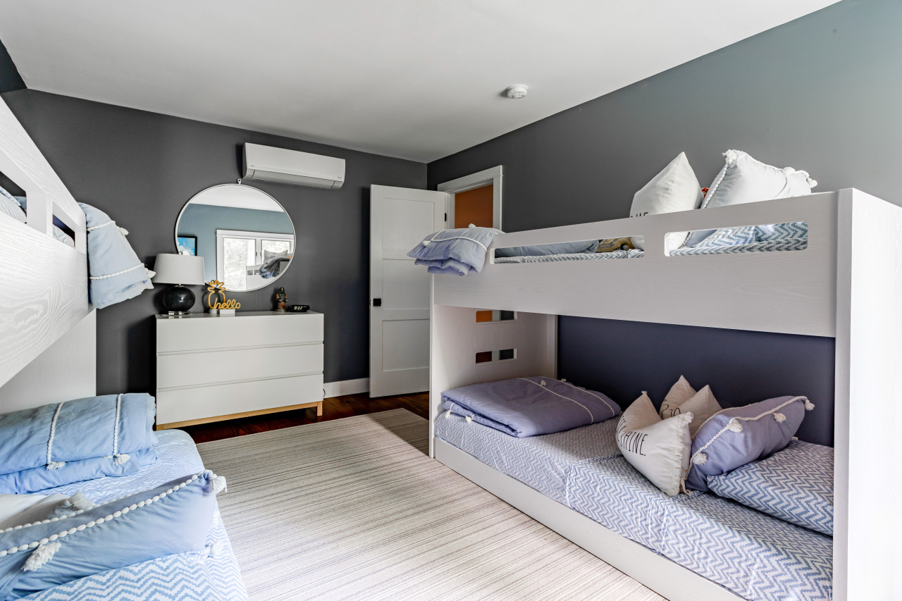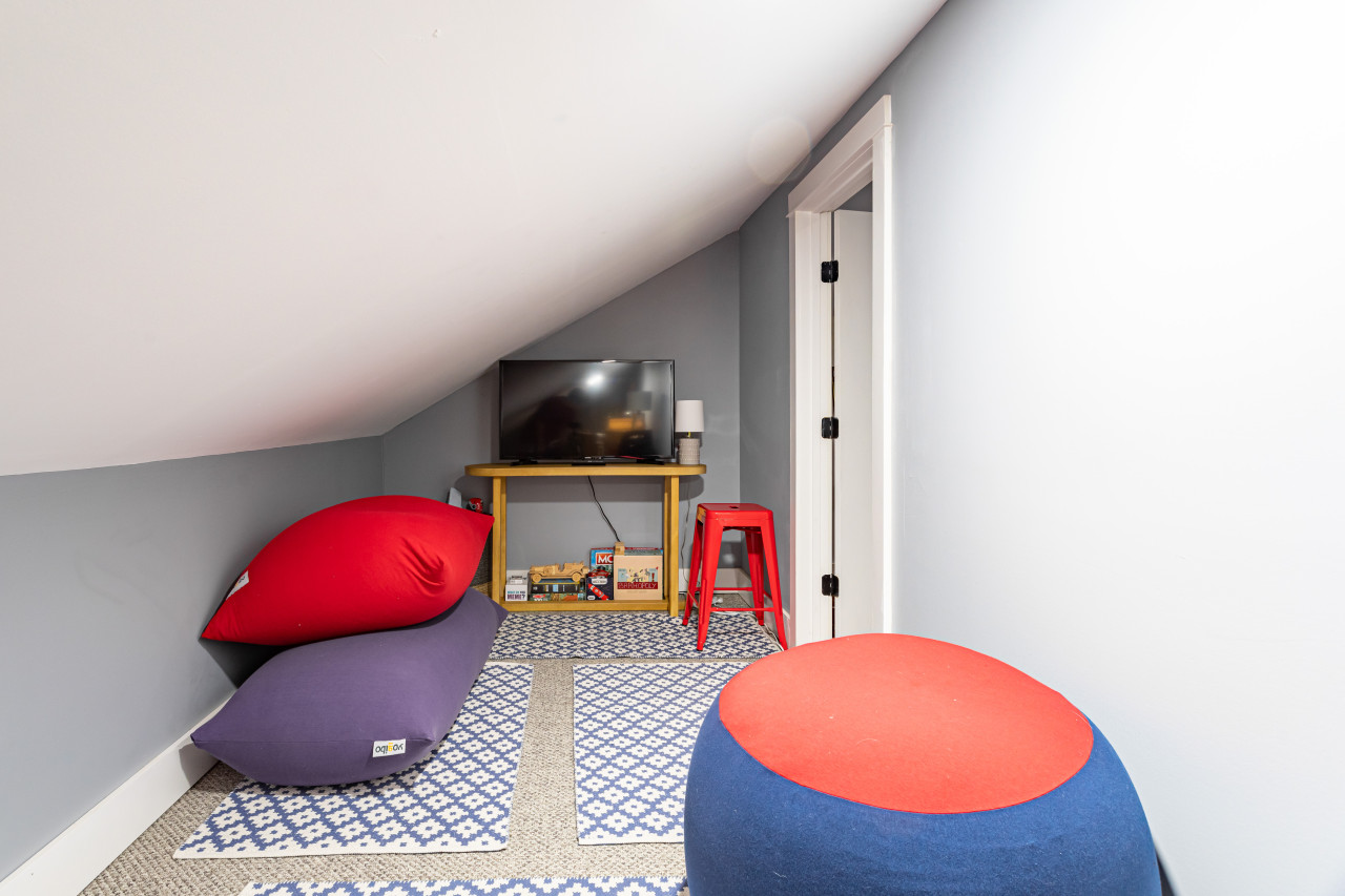 Upper level has 2 further bedrooms (one with an office area), hallway bathroom, and a children’s cubby hangout room for games and tv viewing.