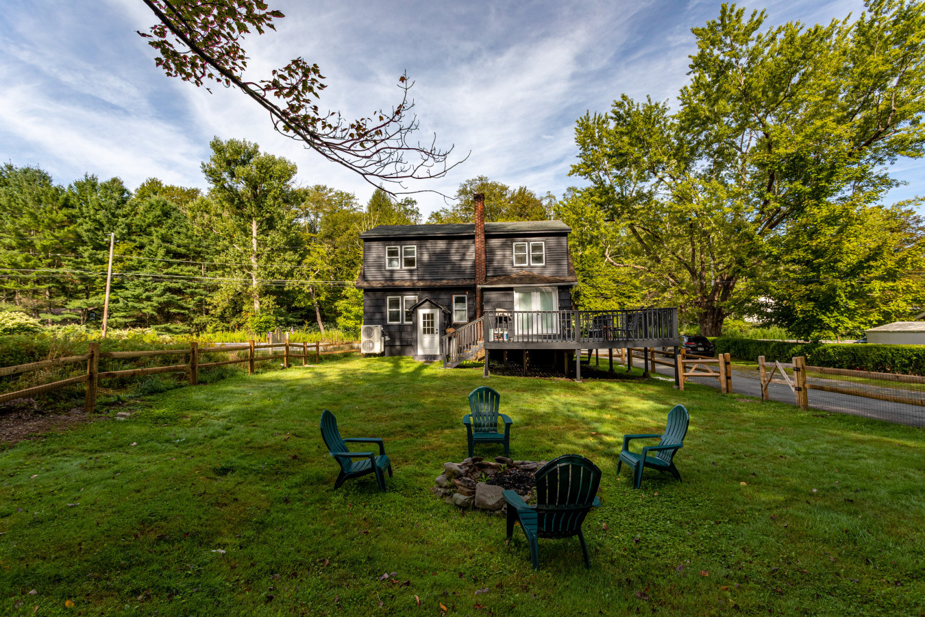 Step inside to bright living spaces, comfy furnishings, and that welcoming “Upstate Place” feel. The main level features a beautiful chef’s kitchen, dining area for six, cozy living room with gas wood-stove, and a twin bedroom, perfect for kids or friends. A full bathroom is on this level too. Upstairs, you’ll find two sunny bedrooms and a luxurious shared bathroom with a separate shower and soaking tub. One bedroom includes a dedicated crib area, cleverly tucked into its own nook so baby sleeps soundly while you unwind nearby.