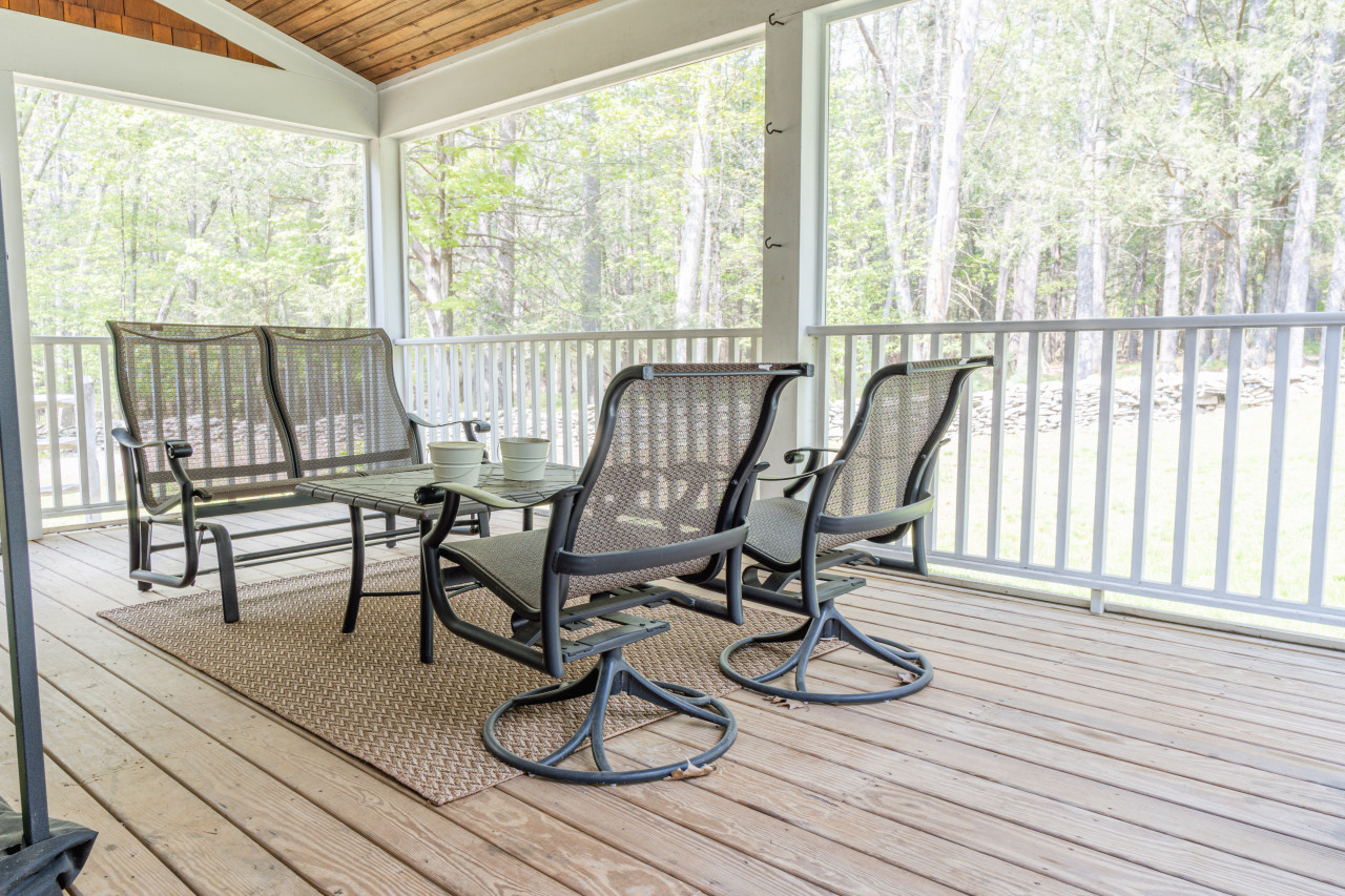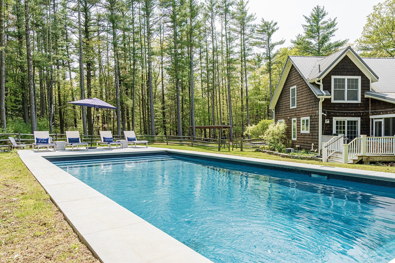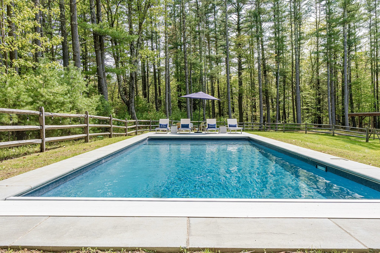 Outside, the beautiful saltwater pool is the centerpiece, and is the ideal spot to spend your days upstate. Pines and evergreens provide a cozy wall of privacy as you enjoy the water, screened porch or the outdoor fire-pit. If weather permits, cooking a good steak on the grill to be enjoyed in front of the fireplace would be the perfect end to a great day!