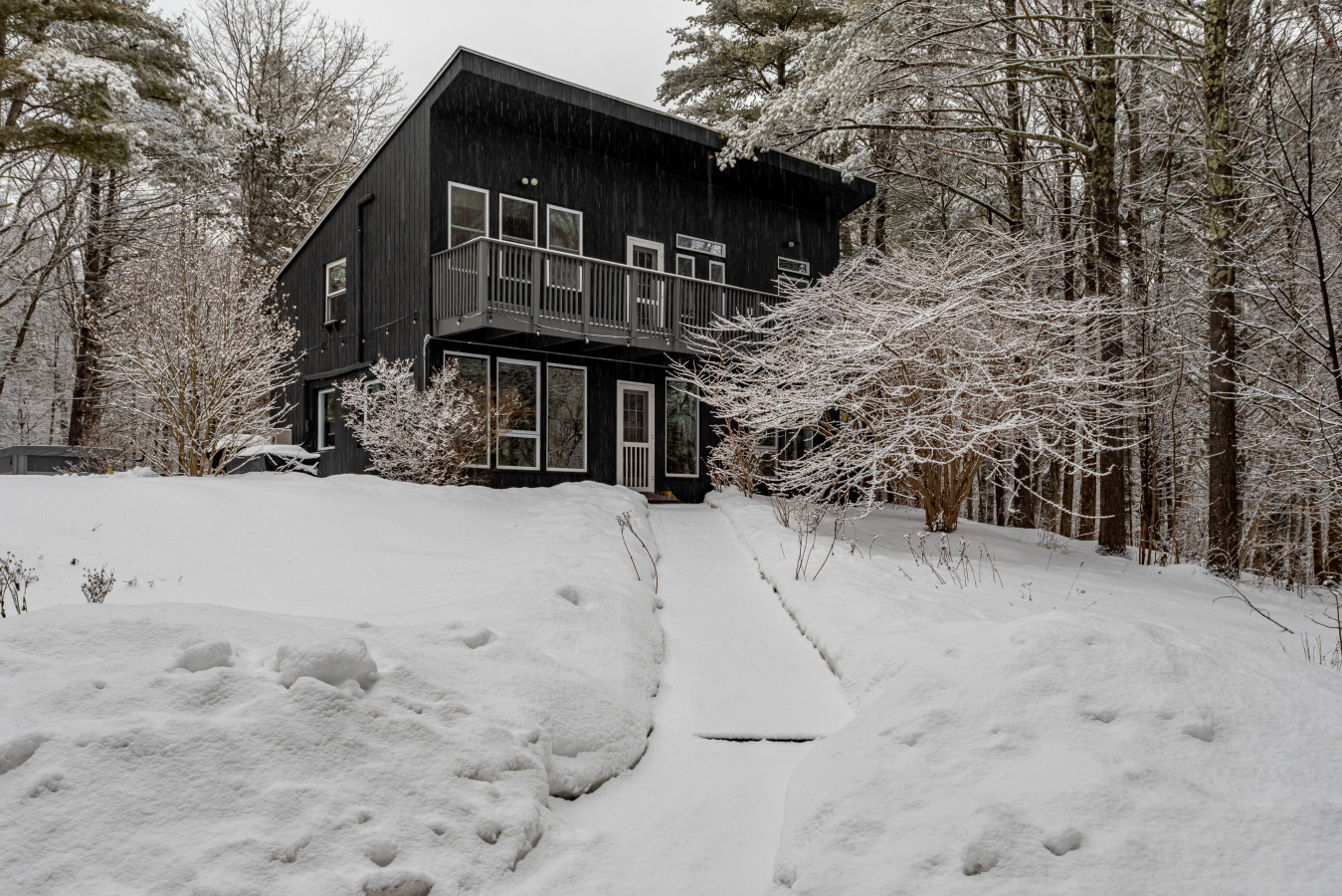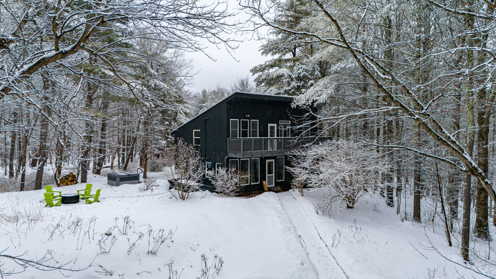 WEATHER: During the winter months there may be ice, snow, and hazardous conditions. We recommend driving a vehicle with AWD or 4WD. We are in the mountains so anything is possible! If snow or freezing rain is forecast, it may be prudent to bring chains for your vehicle. Most driveways are plowed at or before 3” or more accumulation but we cannot guarantee an exact time for the plowing as the crews are often unreachable and out of cell service areas for much of the day. This driveway is fairly flat, and most guests find it very easy to navigate. We do supply snow shovels and pet-friendly salt at each of our properties for extra safety.