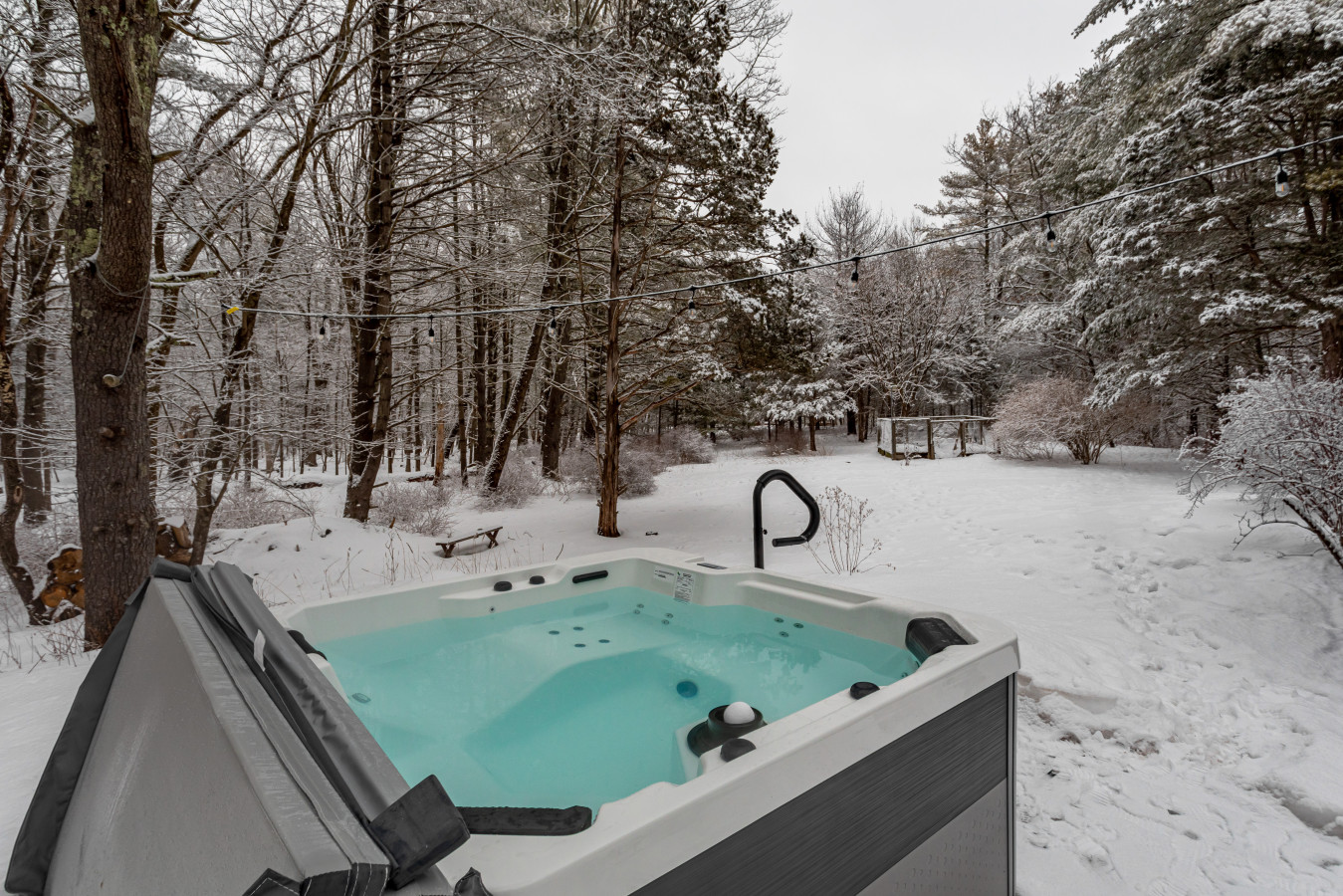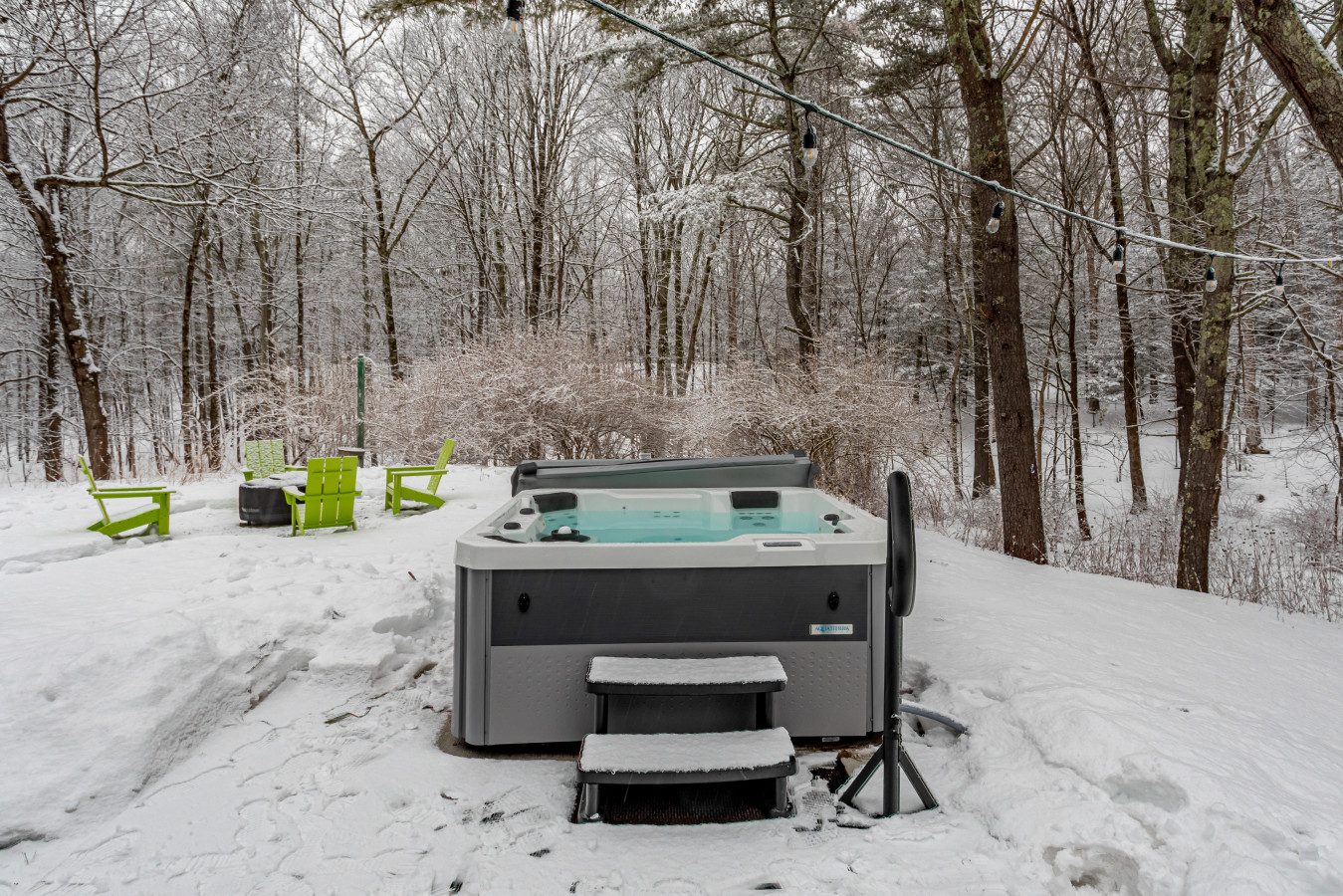 HOT TUB: Guests at this home enjoy the use of their personal spa hot tub. The tub is cleaned, sanitized, treated, refilled, and chemically balanced between each guest’s arrival by our own hot tub technician. This area of upstate New York has heavy mineral deposits in its soil - mainly iron, manganese, and copper - and this can and does impact both the well water that the spa is filled with and, additionally, how it combines with the chemicals that we use to clean, sanitize, and balance the hot tub. Any discoloration of the water is due to the mineral elements found naturally in the well water and how they oxidize with chemicals used. This discoloration usually disappears with filtering and the best way to get to the sparkling blue hot tub water color that guests desire is to use the hot tub and engage the filter system. As we are adding cold fresh well water to the hot tub unit, please be advised it may not be at its hottest temperature upon your arrival. Hot tubs can take between one and two hours to increase their temperature between 5°F - 10°F. Much depends on the air temperature and how long the unit has been heating for. We keep our hot tubs covered for both cleanliness and to insulate, and this helps the temperature rise as quickly as possible.