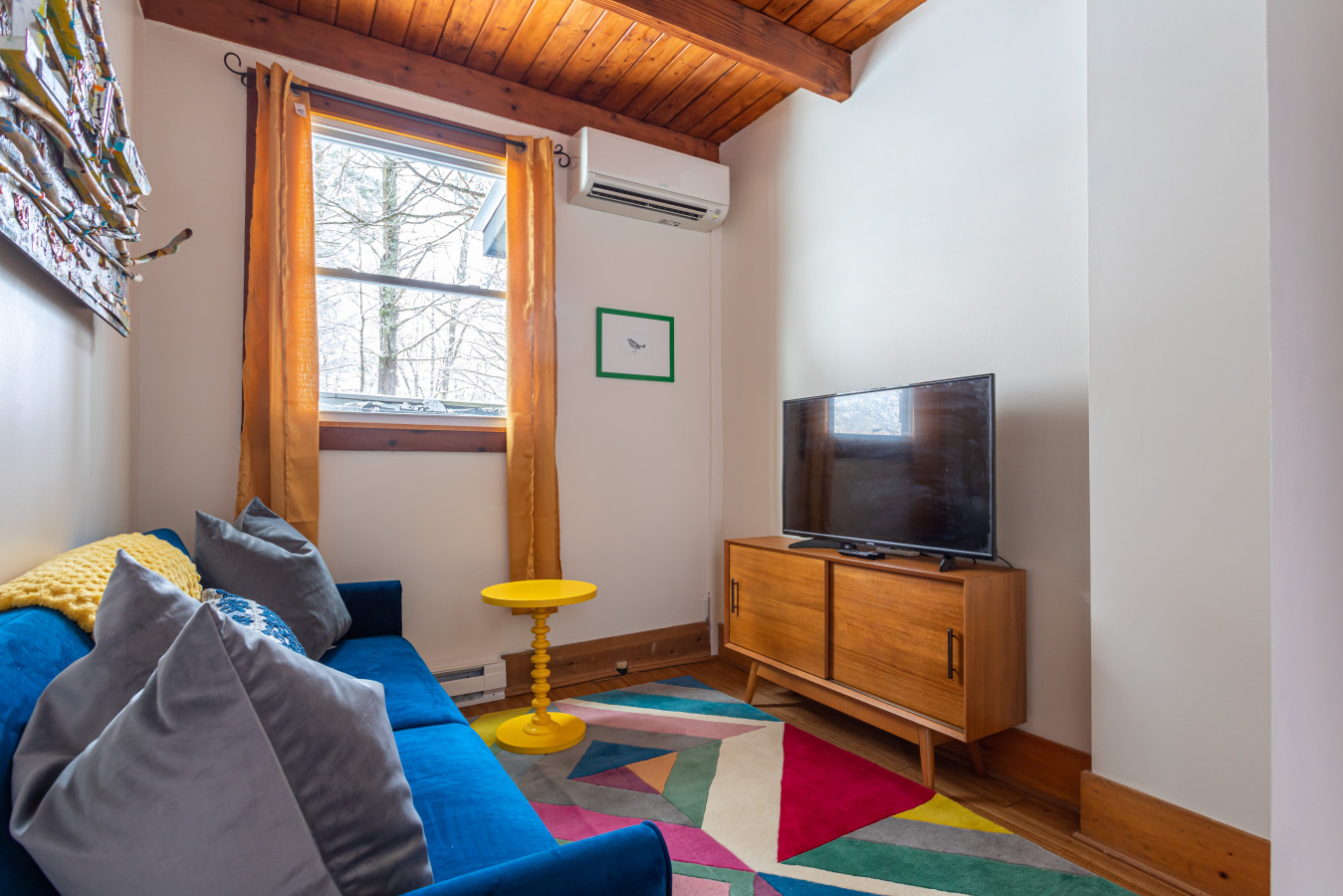 SoulWood is a private, light-filled retreat designed for guests who want both charm and access to the Hudson Valley’s most beloved towns. This two-story woodland home pairs cozy cabin warmth with soaring ceilings and tall, wide windows that flood the interior with natural light. Surrounded by trees, the house feels immersive and peaceful in every season.