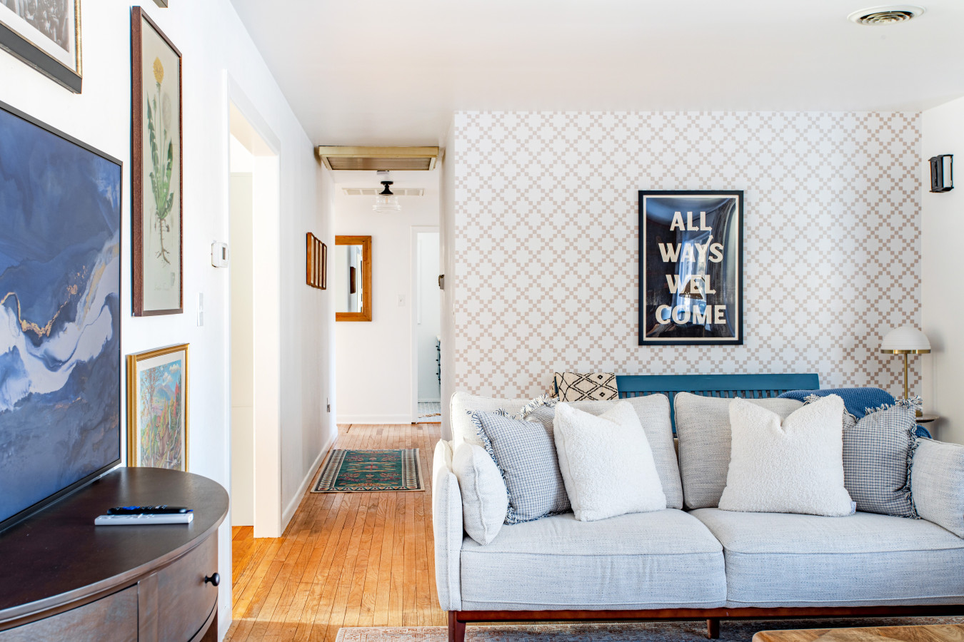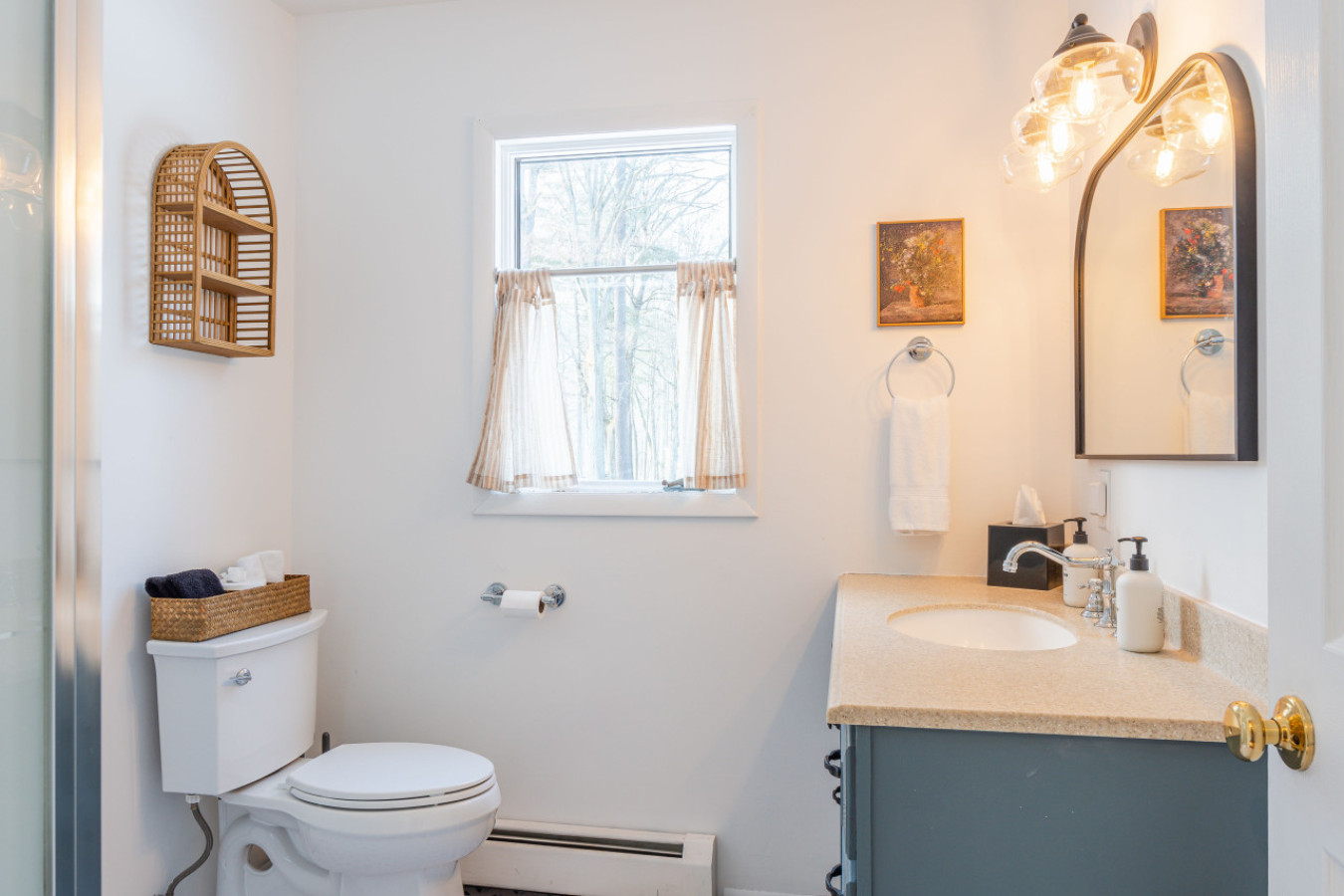 Returning home, the three bedrooms are super comfortable, with luxurious bed linens, and, in two of the rooms, desks for anyone who needs to work or check into the office. The updated, spacious bright bathrooms have good lighting, piping hot water, and Public Goods toiletries.