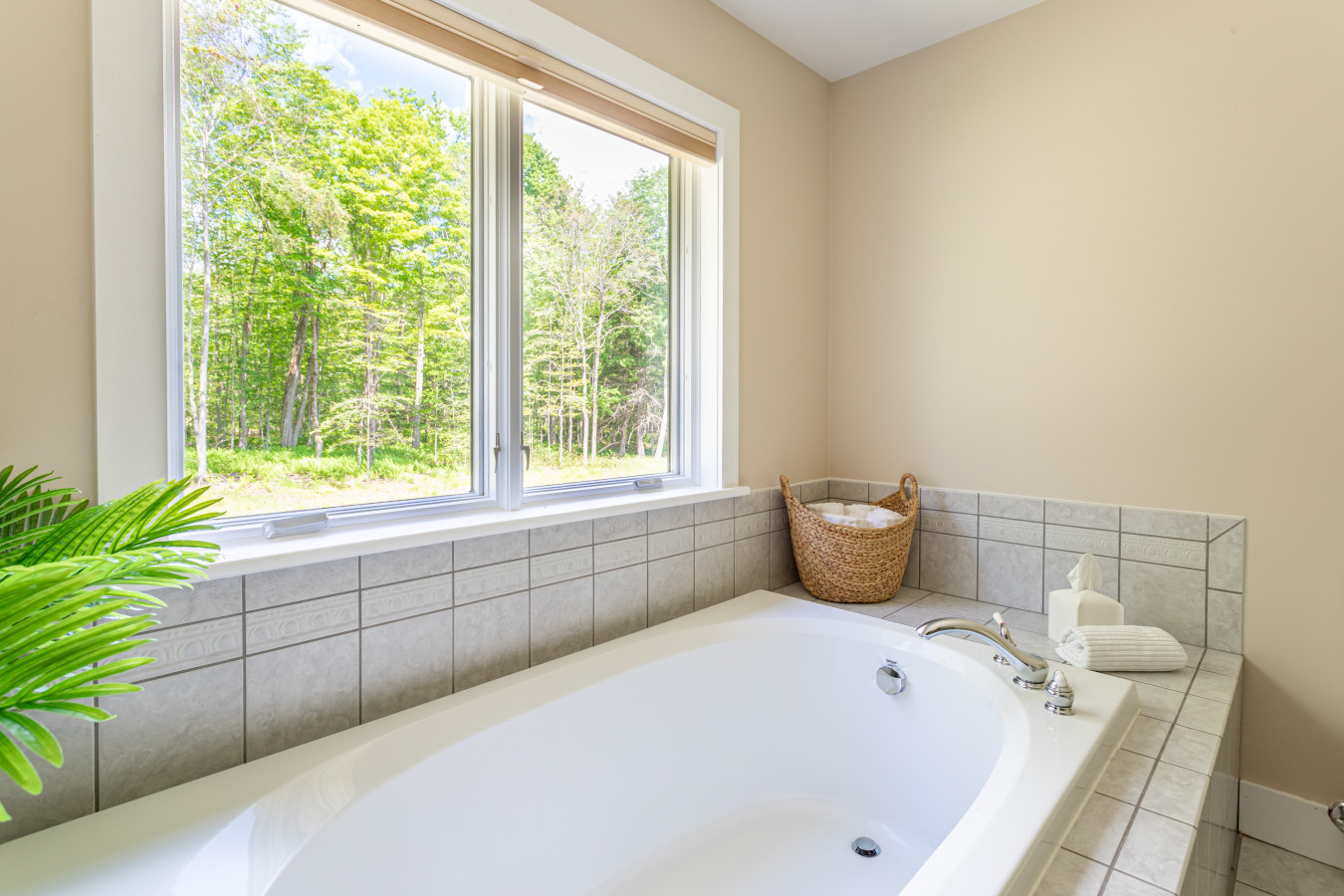 On the main level, you'll find two serene king bedrooms, one of which includes an en-suite bathroom with an oversized soaking tub—ideal for unwinding after a day of exploring. A nearby powder room adds convenience.