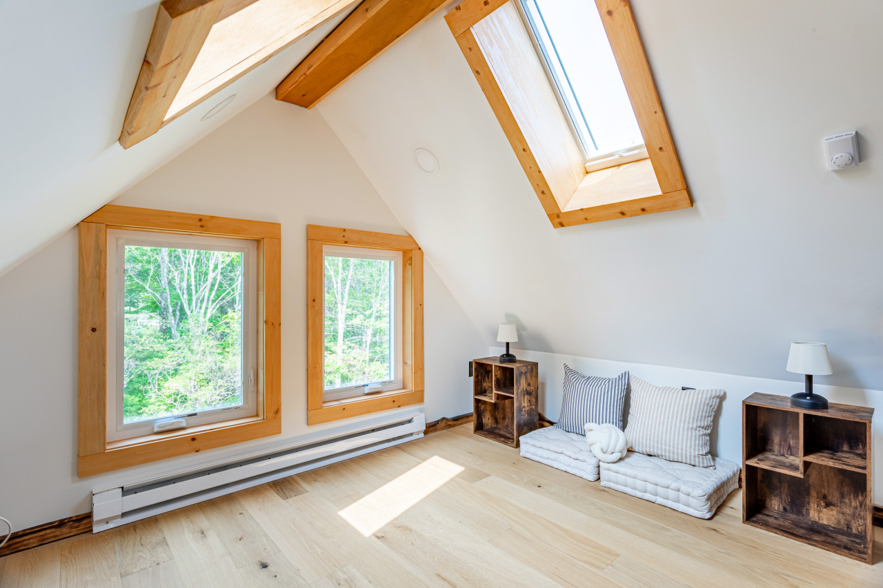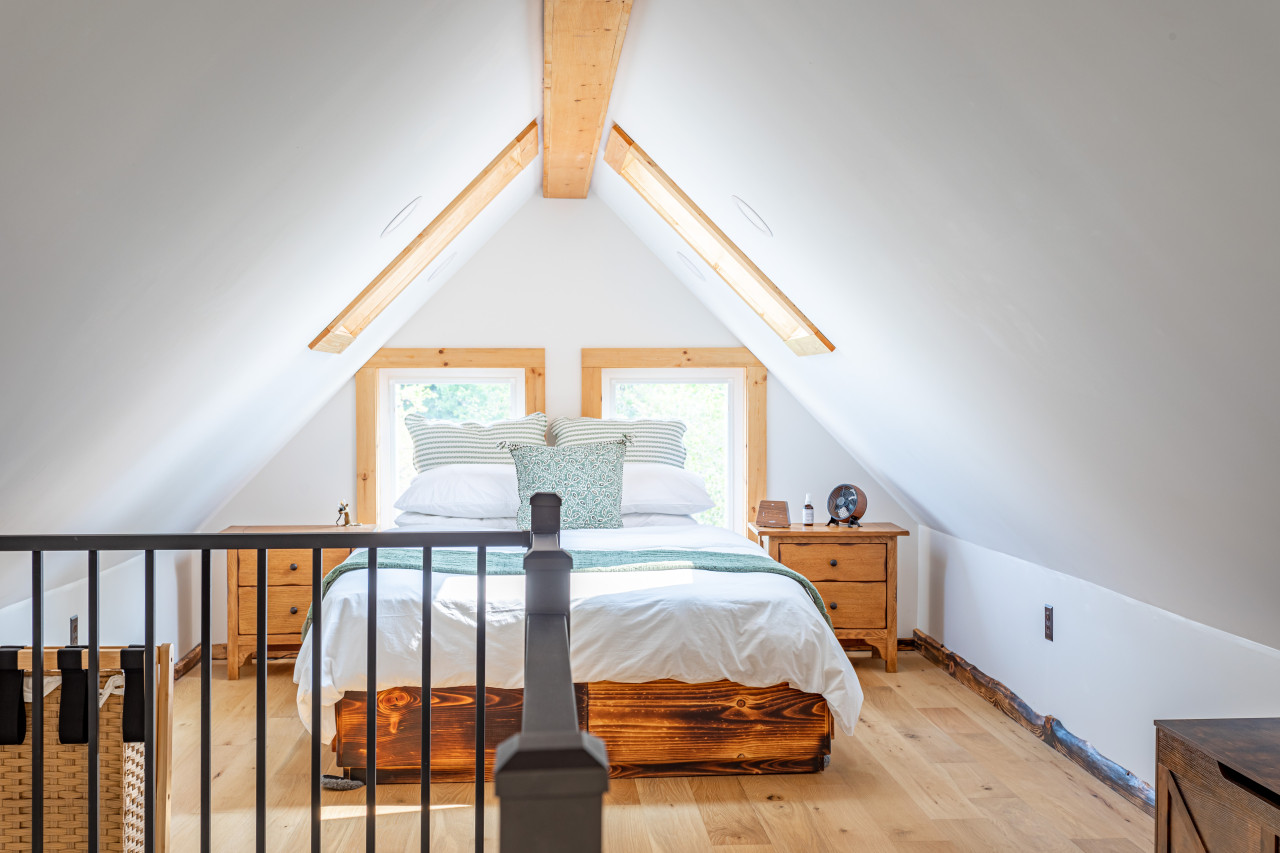 Aesthetically, while the home is new, it nods to the quality post and beam homes of the past. Heavy timber, great sight lines and generous fenestration bring the outdoors in, and make for a spacious feeling. It’s also a petroleum free home that relies on electricity from the local solar farm.