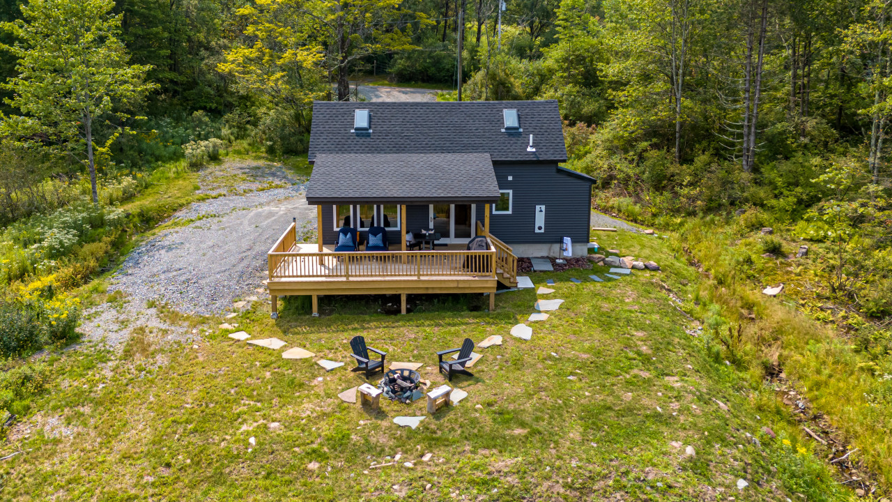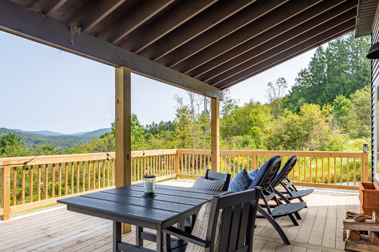 The lovely private garden has a north facing covered deck looking out to the Willowomec Wild Forest, with both dining and sun lounger seating, and an adorable fire-pit with Adirondack chairs. The fall views from here will be ticket-worthy!