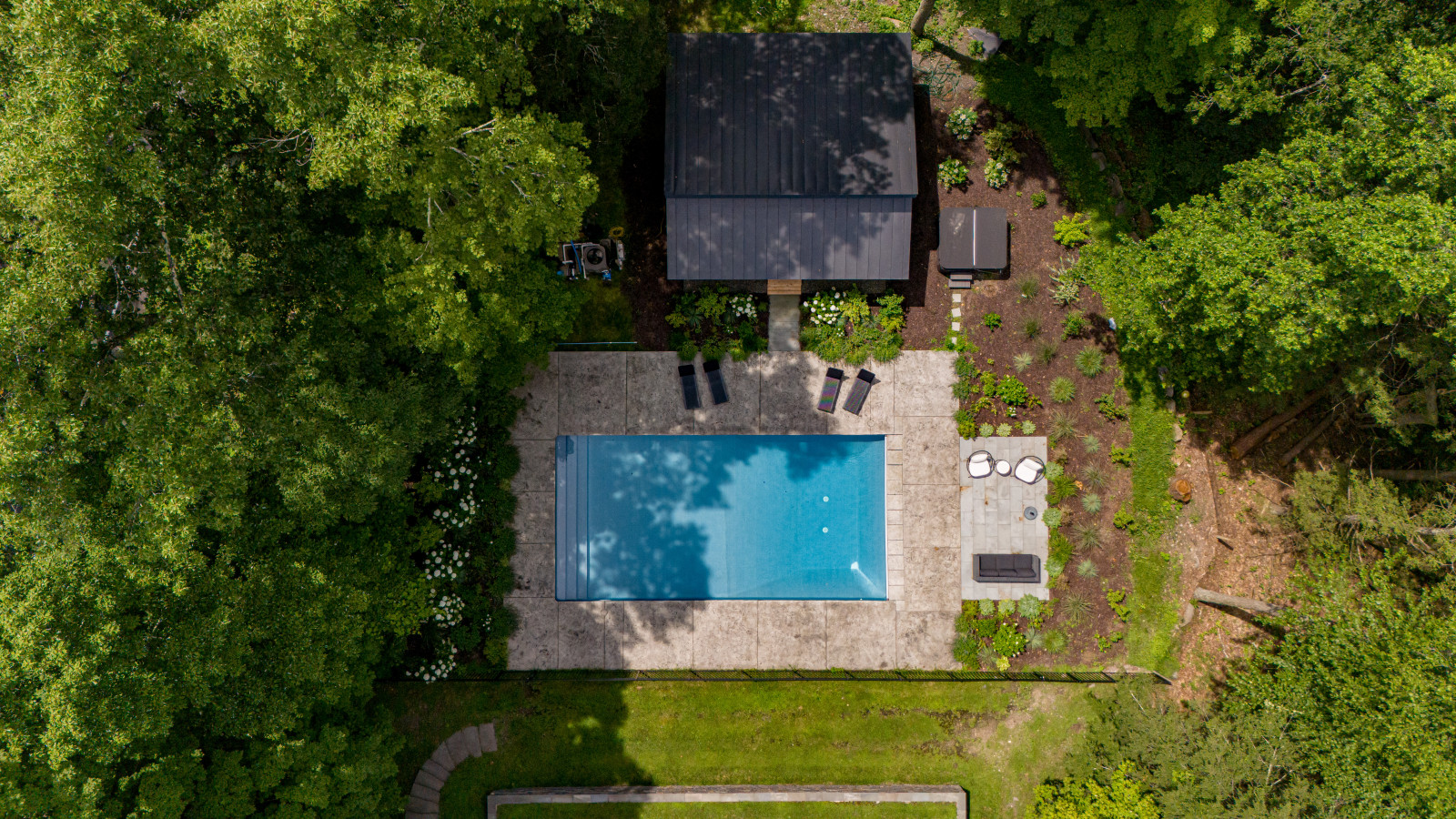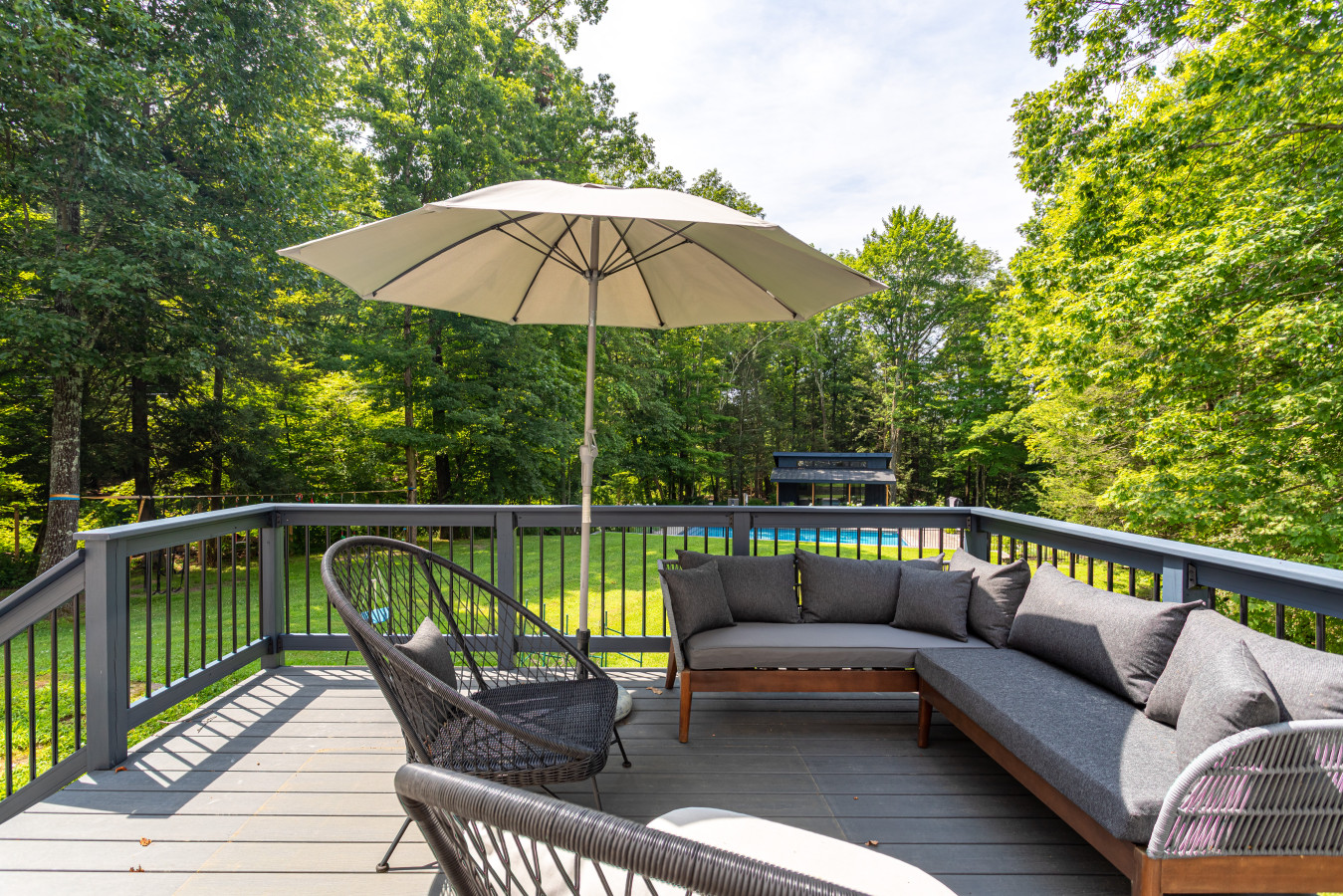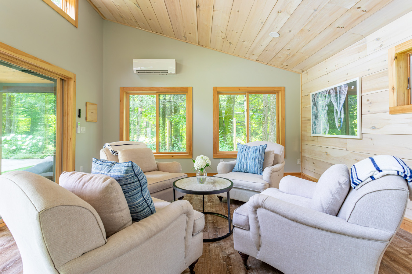 Outdoors, the experience is just as curated. Lounge on sun-drenched decks, unwind in the year-round hot tub, or take a dip in the striking pool (open July through September). The real jewel? A stunning, fully-outfitted pool cabana—complete with air conditioning, a chic lounge, full bathroom, and a convenient kitchenette. It’s your perfect spot for morning coffee, shaded naps, or sunset cocktails.