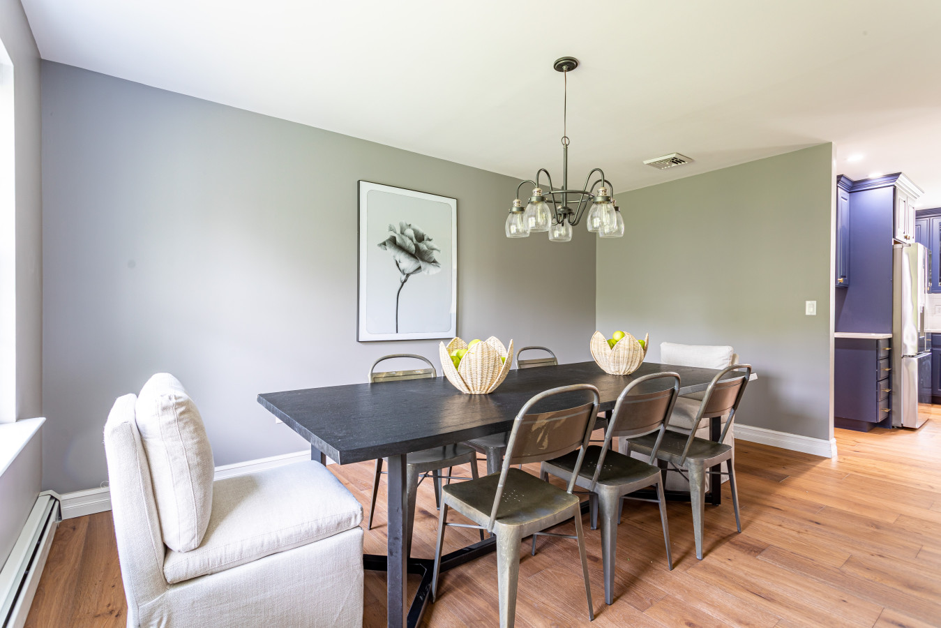 Main entry floor level has the living room, dining room, kitchen, powder room and laundry room/ mud room