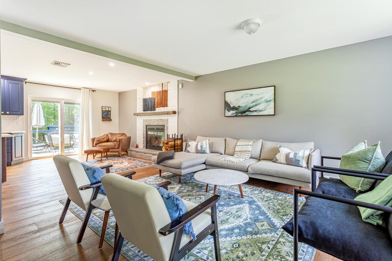 Whether you’re gathering with family or escaping with friends, The Onyx offers a seamless blend of indoor comfort and outdoor indulgence. Set on a private, wooded lot, this spacious home features an open-plan layout with a chef’s kitchen, stylish living areas, and a cozy wood-burning fireplace—all with serene views of the show-stopping pool and surrounding greenery.