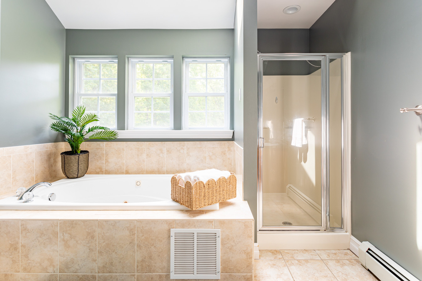 • Bathroom 1 - En-suite to primary bedroom, w/ shower and separate tub