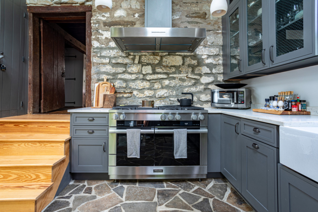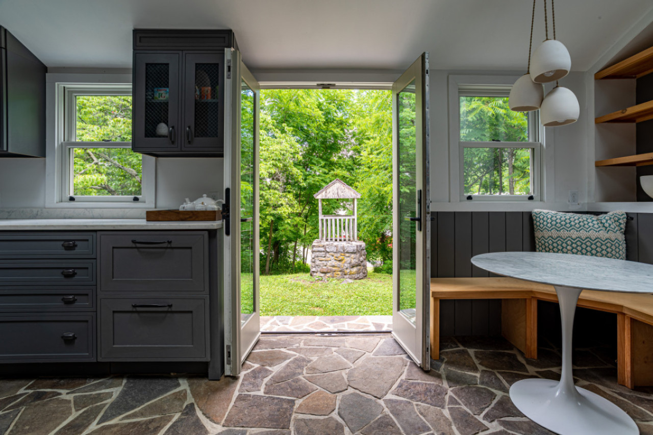 The kitchen area has french doors to the stone patio, brining a fourth entertaining space into the fold. There is also a Dutch door in the mud room - ideal for when you would like fresh air but want to keep a little one or pup inside.